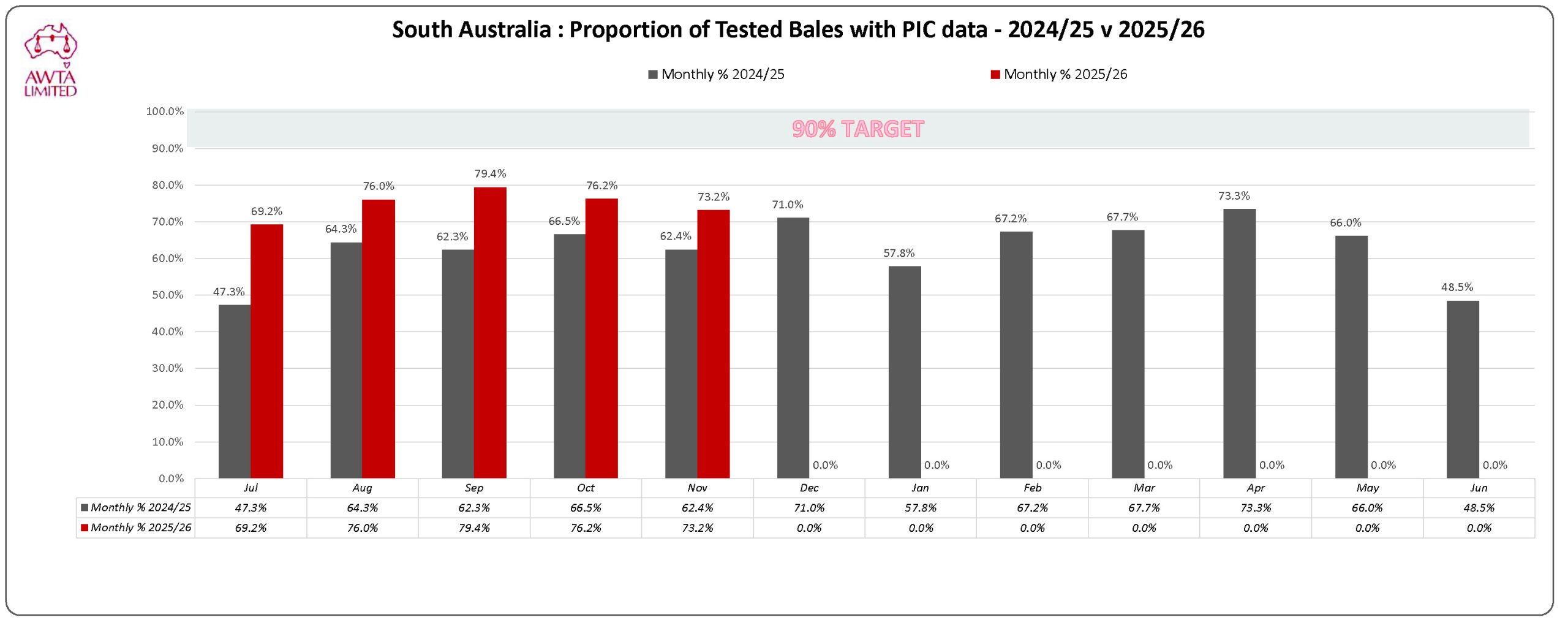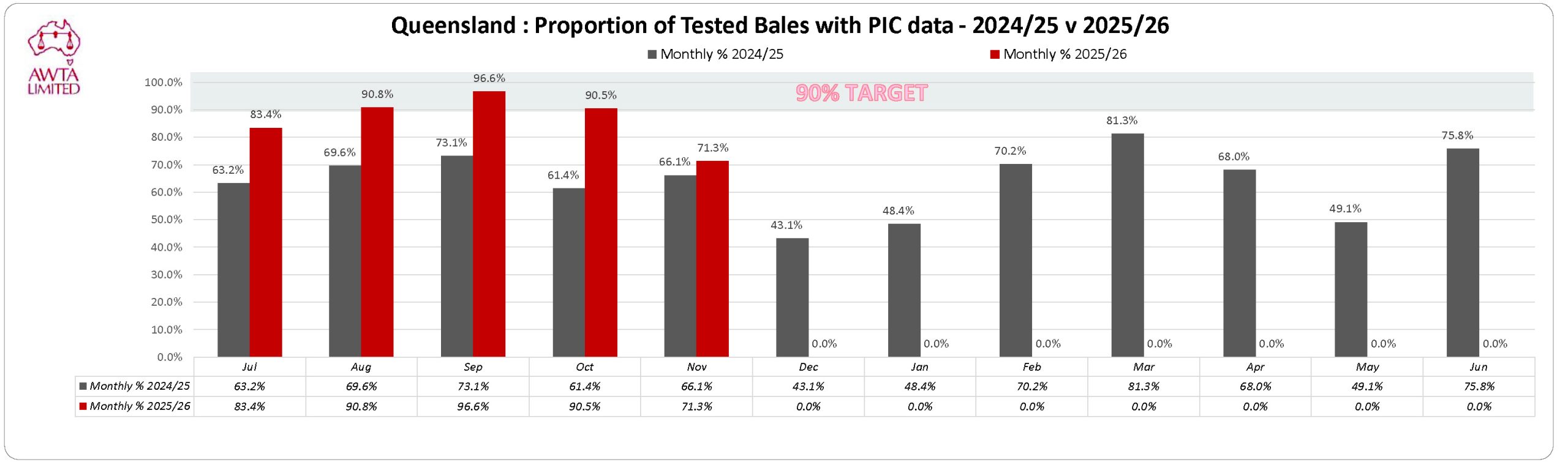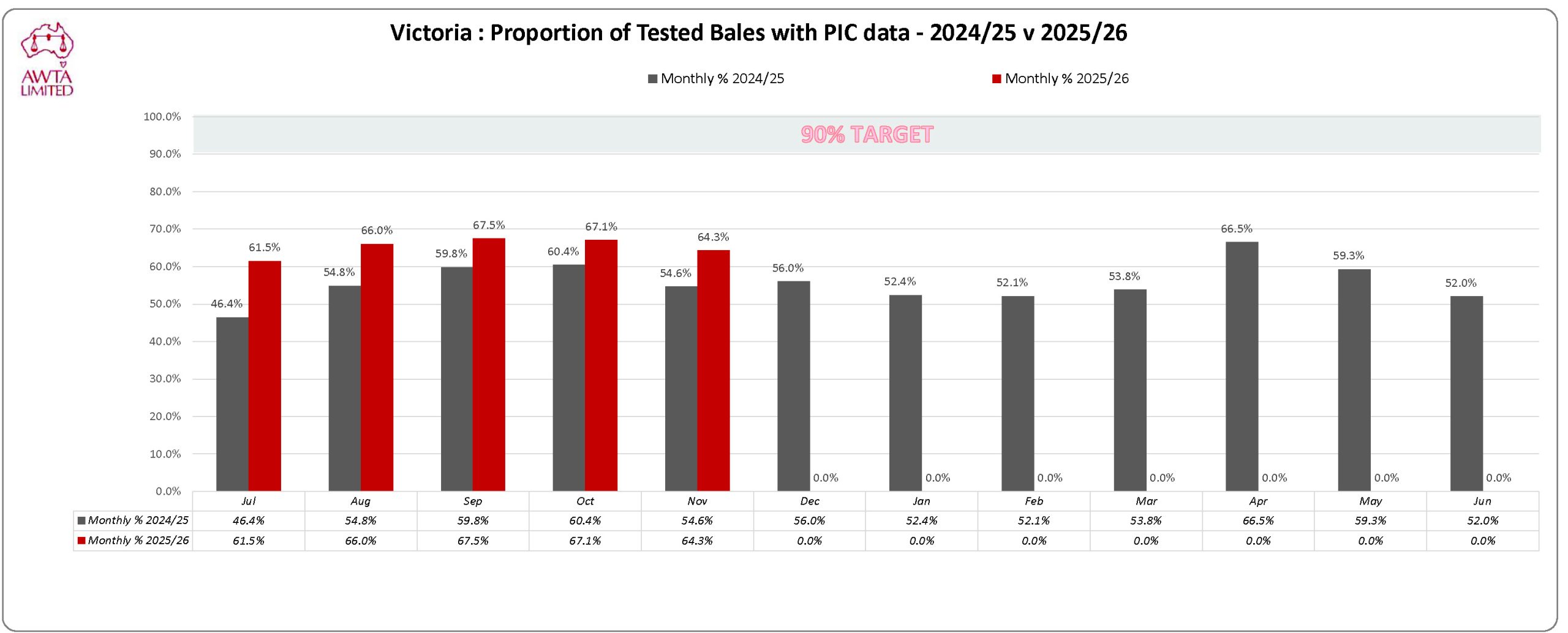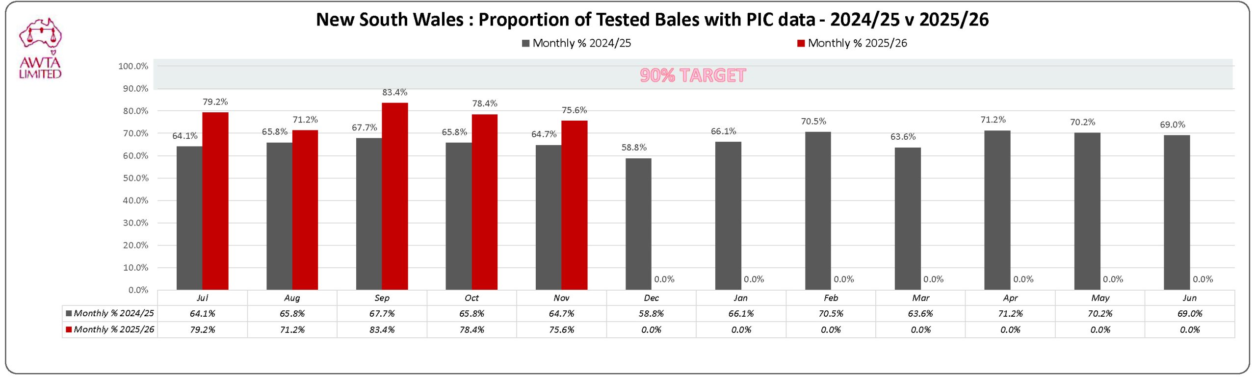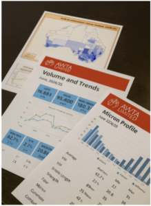 AWTA 的主要測試資料報告每月更新。 這些報告包含有關 AWTA 在當季和前一季測試的棉包數量和批次的詳細資訊。 此外,還提供詳細資料,說明測試批次、包數和重量的比較變化,以及平均產量、含素量、纖維直徑、短纖長度/強度和顏色結果的季節性變化。此外,還包括與一般纖維直徑範圍內的測量量相關的進一步數據,以及超細和超細羊毛趨勢。.