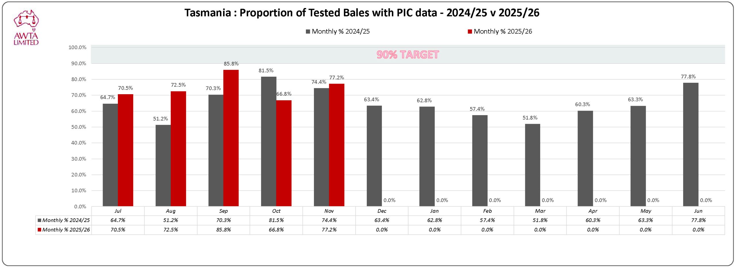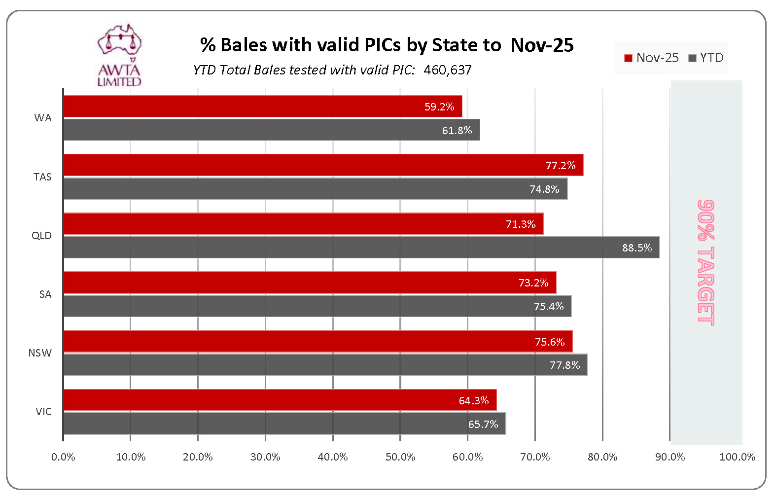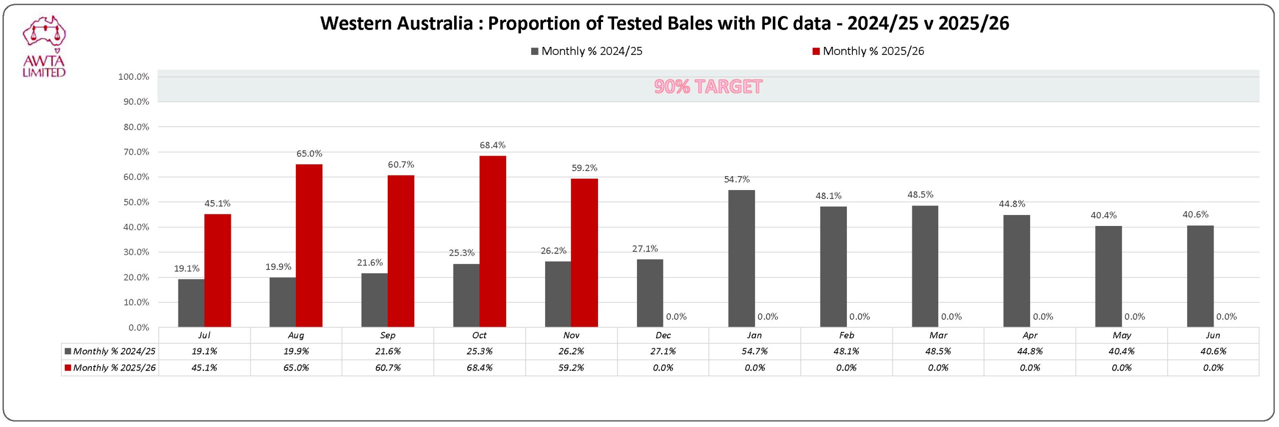 AWTA 的中央證書資料庫包含了自 1991/92 年以來測試的羊毛包數量、測試的羊毛重量以及相關的客觀測量數據。.