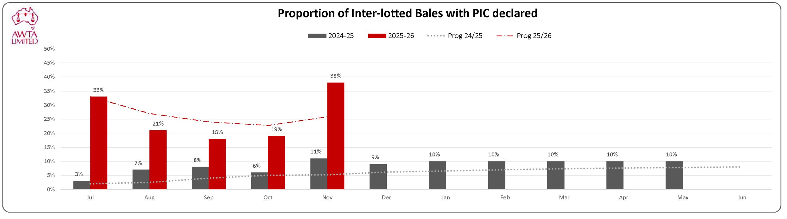 AWTA Ltd 和 Australian Wool Exchange Ltd (AWEX) 每月聯合發佈統計數據,報告各種 「騾毛狀態 」類別下的羊毛檢測量和拍賣量。這些圖表可從以下連結取得: