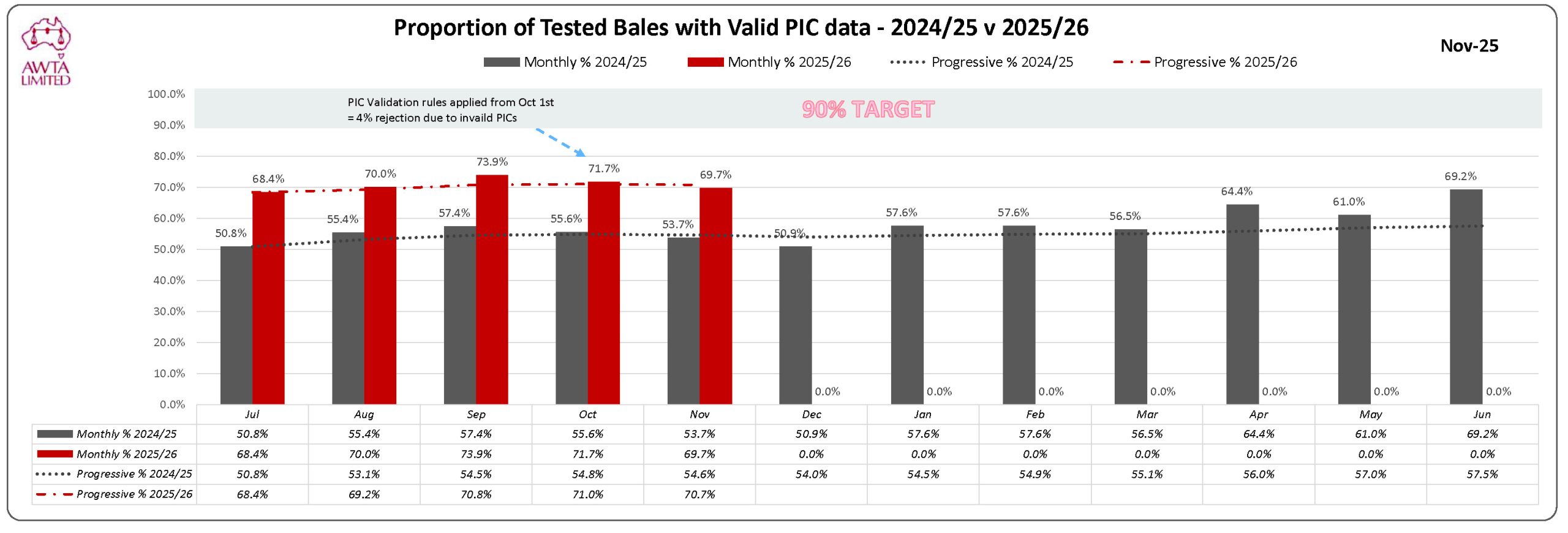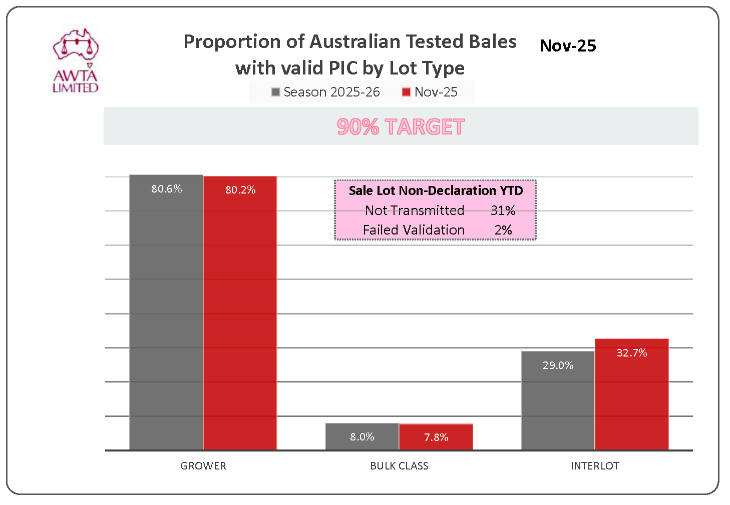 This dataset plays a vital role in mitigating the impact of an Emergency Animal Disease (EAD) outbreak by allowing authorities to quickly trace potentially affected wool between storage and dump sites. To ensure this capability is effective, a high rate of PIC declaration is essential. Industry groups, in collaboration with the 澳洲羊毛追蹤中心 (AWTH)—now owned and managed by AWTA—are working to improve PIC uptake across the supply chain.